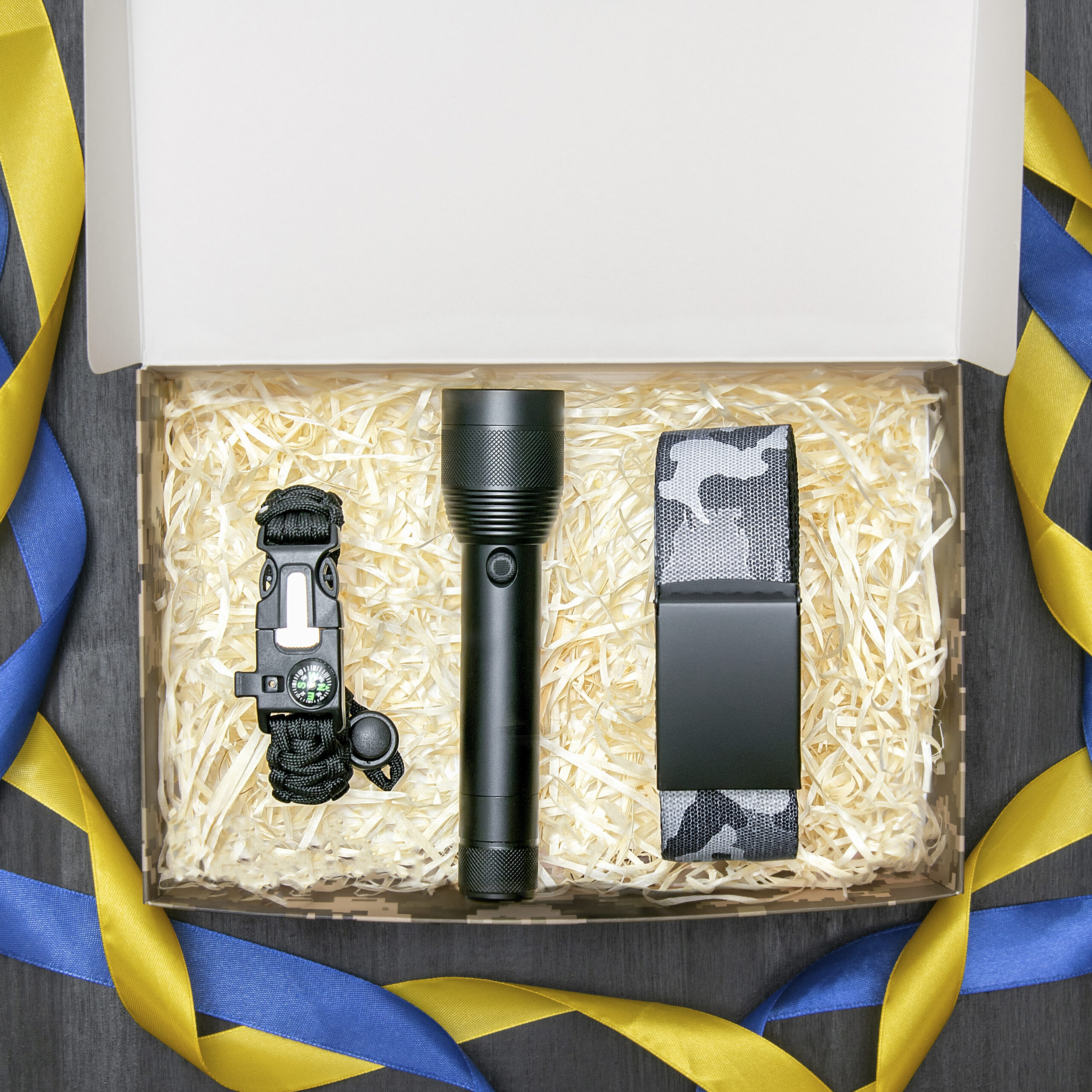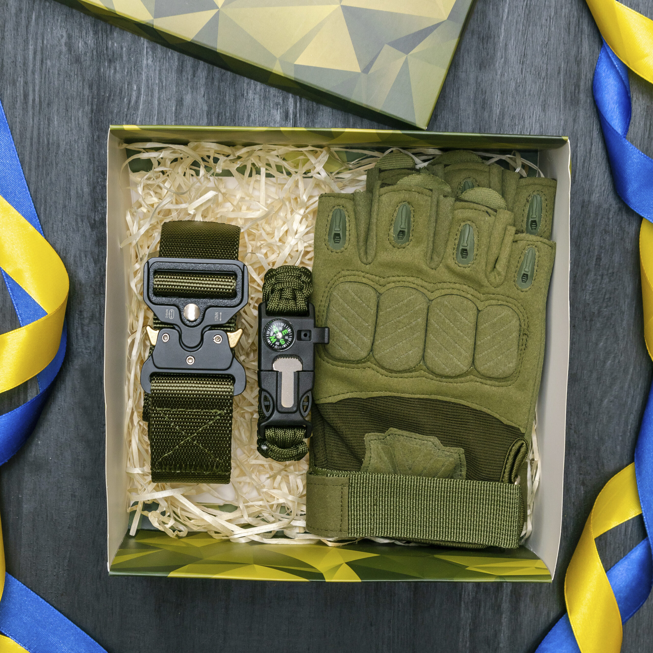 Приємно отримати один подарунок, а відразу кілька корисних речей – ще приємніше. Тому подарунковий набір є чудовою ідеєю для будь-якого приводу. Бокс із тактичним спорядженням містить рукавиці, ремінь і браслет для виживання – ідеальний варіант для військового.