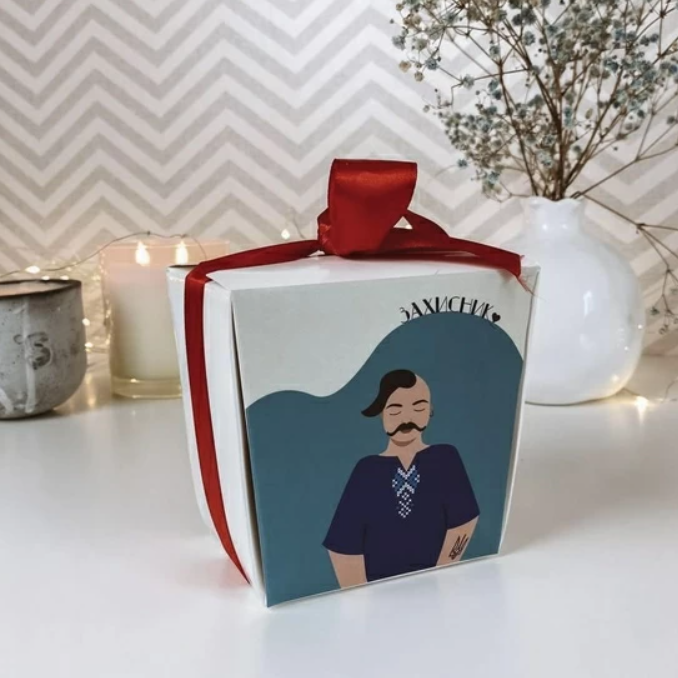 Підбадьорити, надихнути та розвеселити представників сильної статі легко з печивом «Захисник». Ніжні та хрусткі смаколики містять теплі передбаченнями. Оригінальна коробка, смачна випічка та добрі пророцтва створюють нестандартний подарунок для найрідніших захисників.